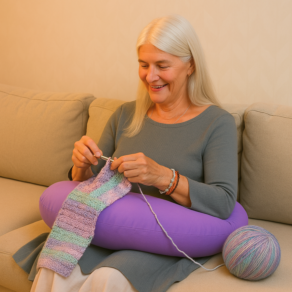 "Dit kussen is geweldig. Het past me perfect voor mijn haakprojecten. Mijn schouders en armen doen geen pijn meer door de spanning. Het helpt me een betere houding aan te nemen, waardoor ik minder rugpijn heb."
